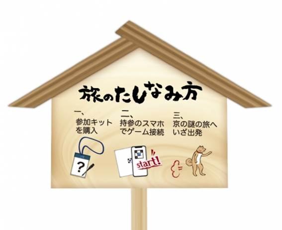 謎解きタウンが仕掛ける、京都のまちを巡りながら物語体験ができる新型の観光商品です。参加者は、不思議な謎がたくさん仕掛けられた謎解きキットとスマートフォンのガイドに沿って、謎を解く手がかりを探し出しながらゲームクリアを目指します。謎の旅のさなか、普段とは異なる京都の一面と出逢うことができます。